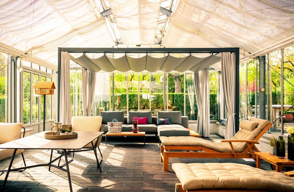 The decor of the space, with its contemporary vibe, enhances an elegant area characterized by an interesting combination of textures and colors.
