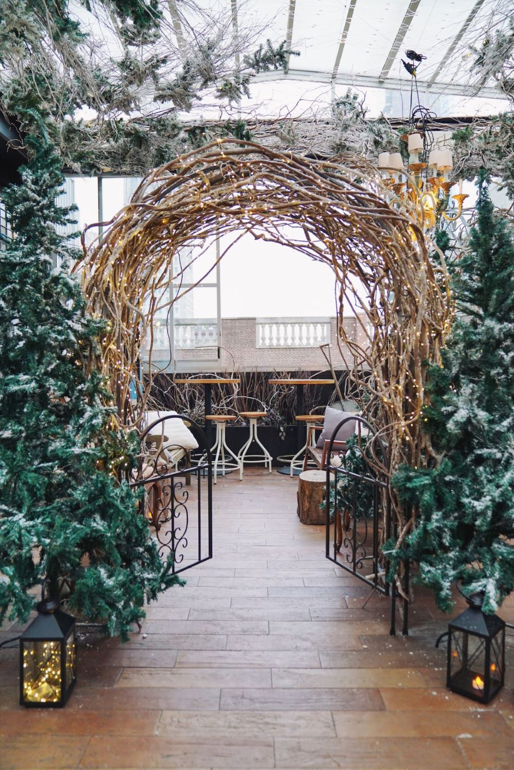 Eataly New York Is Ready For Christmas ⇒ This Italian food market and restaurant located in Flatiron has put up a brand new holiday installation: Serra Alpina. The rooftop bar was covered in a magical ambience with handmade decorations made from tree branches, leaves and pine cones to resemble a cosy winter cottage. This pop-up opened in November and runs all the way until March.